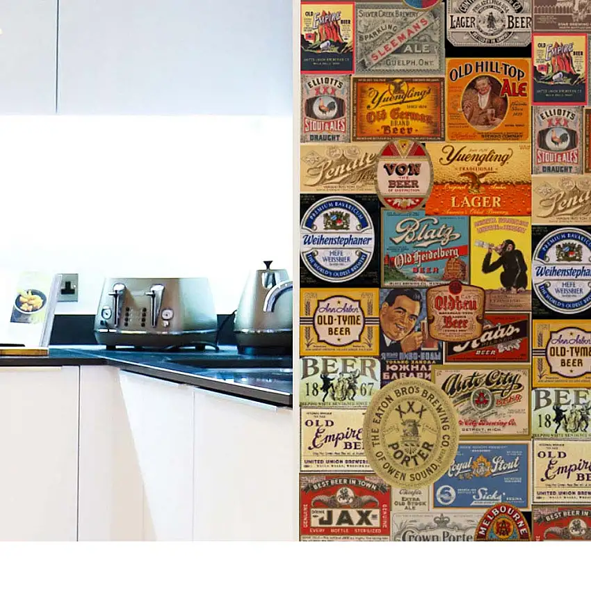 Promoção!Adesivo de parede rótulos cerveja 44cm x 3 metros Grudado Adesivos