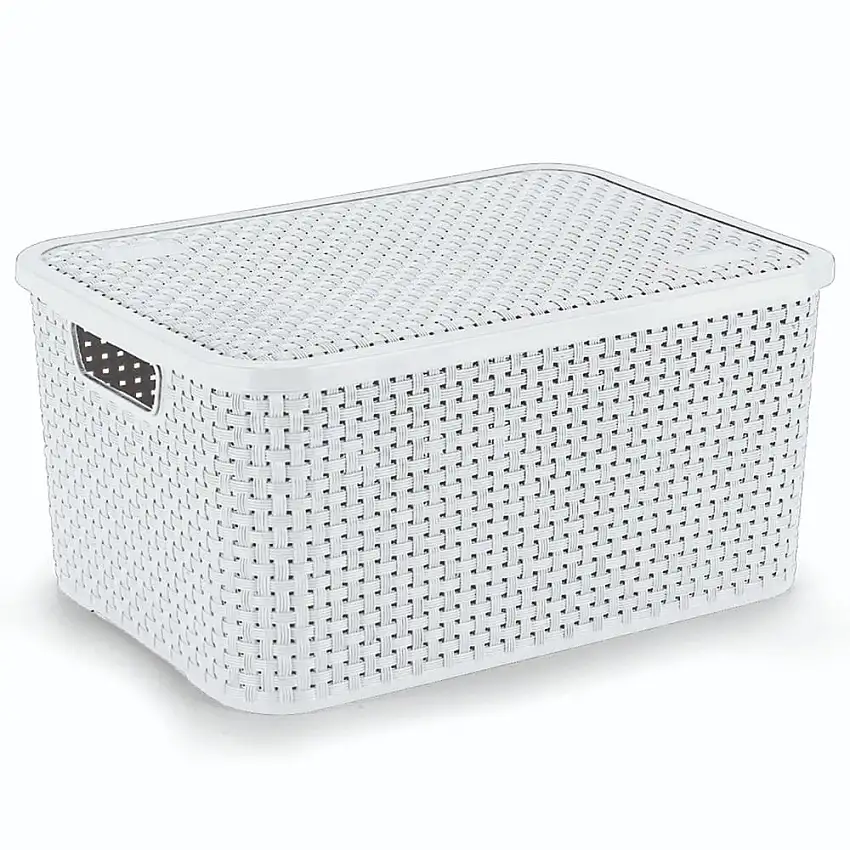 Promoção!Cesto Organizador Rattan Grande Branco Com Tampa Nitron