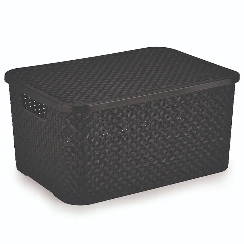 Promoção!Cesto Organizador Rattan Grande Preto Com Tampa Nitron