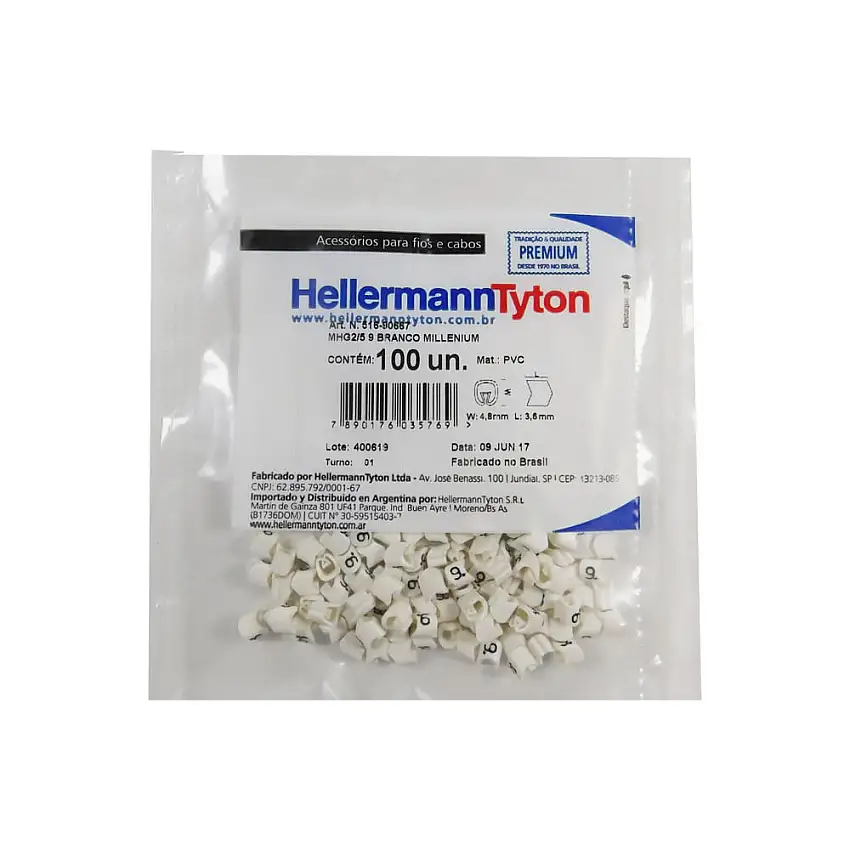 Promoção!Identificador De Cabos MHG 2/5 Num 9 100un Branco Hellermanntyton