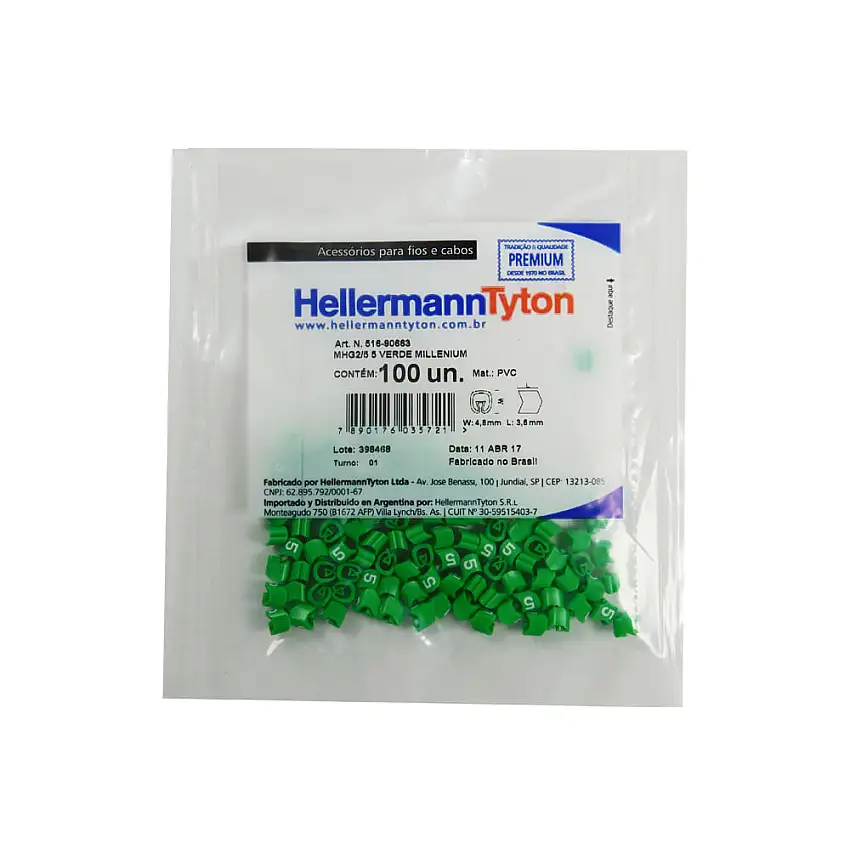 Promoção!Identificador De Cabos MHG 2/5 Num 5 100un Verde Hellermanntyton