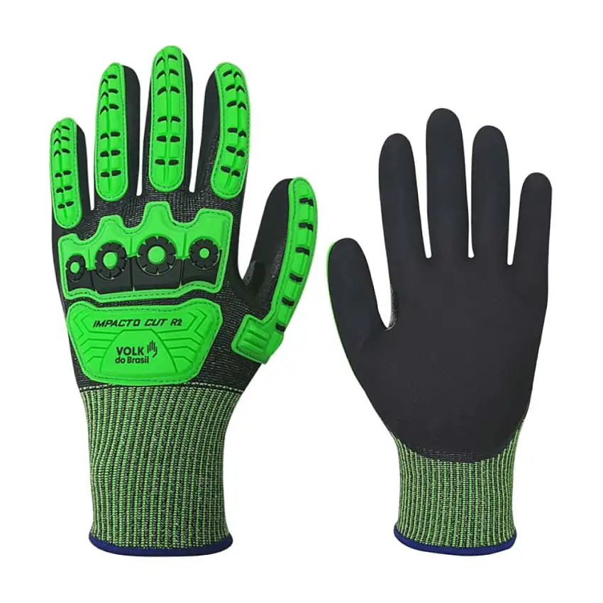 Luva Proteção Mecânica e Térmica Verde Nitrilico ImpactoCutr2 Tamanho G Volk