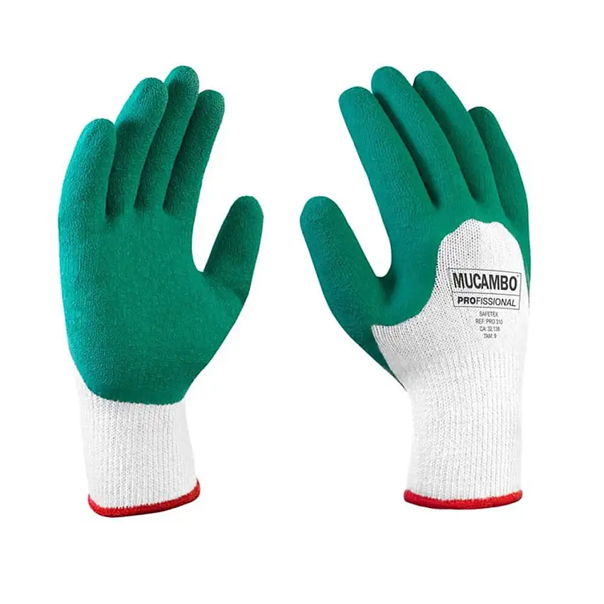 • Luva Proteção Mecânica Algodão com Banho Látex Branca e Verde Tamanho 8/M PRO310 Mucambo