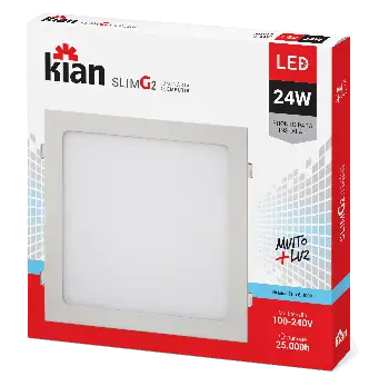 • Luminária de Embutir Kian Quadrado LED Slim G2 Alt: 2cm Comp.: 29,3cm Larg: 29,3cm 24W 6000K Branca.