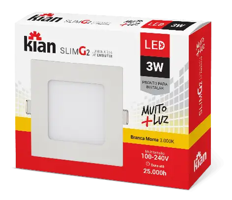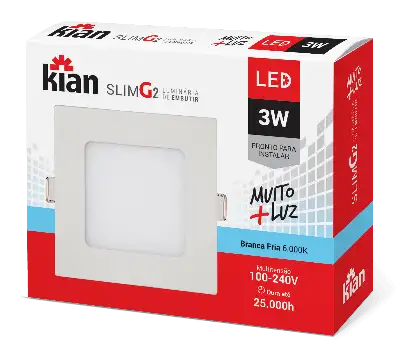 • Luminária de Embutir Kian Quadrado LED Slim G2 Alt: 2cm Comp.: 8,3cm Larg: 8,3cm 3W 6000K Branca