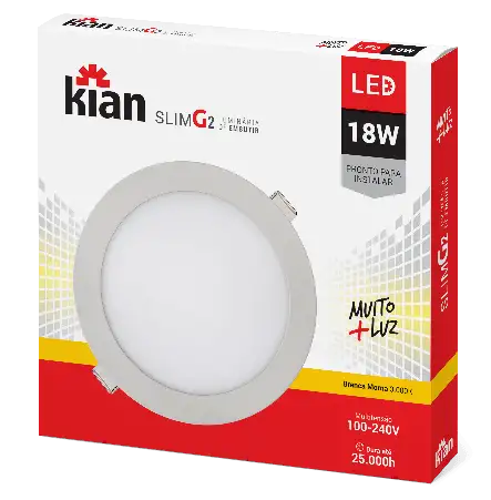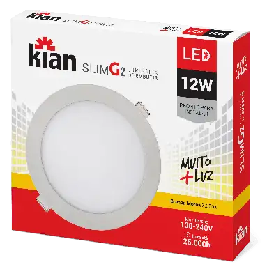 • Luminária de Embutir Kian Redondo LED Slim Alt: 2cm Comp.: 16,8cm 12W 6000K Branca.