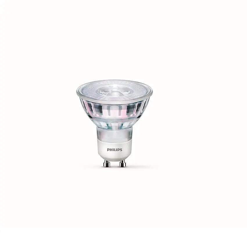 • Spot LED Philips direcional dimerizável GU10 127V 4.5W 2700K amarela 350lm