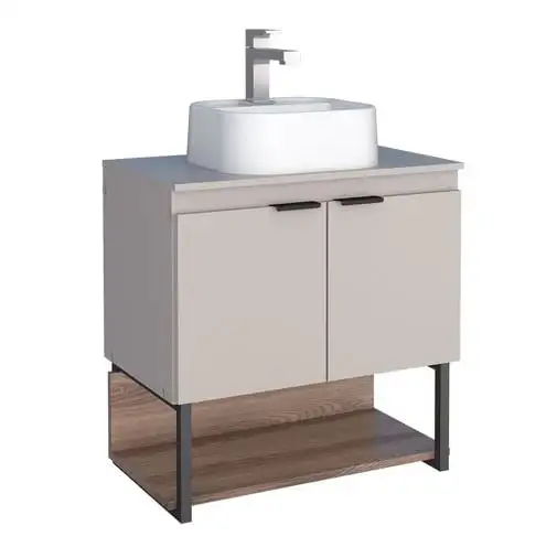 • Toucador Para Banheiro Em Madeira Orquídea Colors Cinza 80Cm Com Lavatorio Cozimax