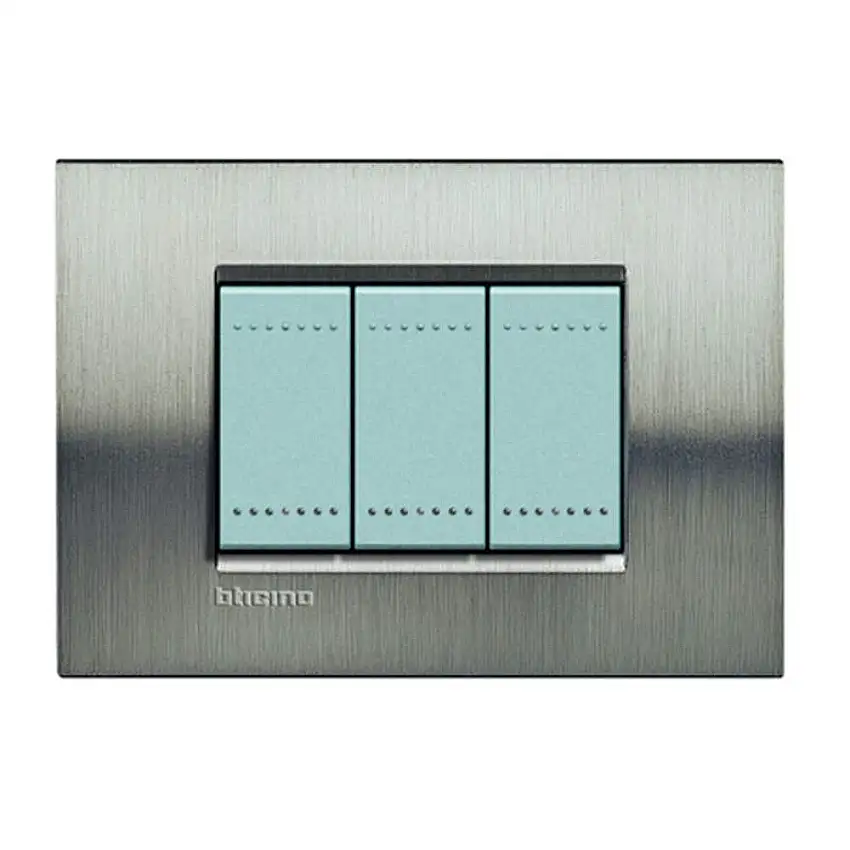 Placa 2×4″ Acciaio Spazzolato 3Seções Quadrada LNA4803ACS Bticino