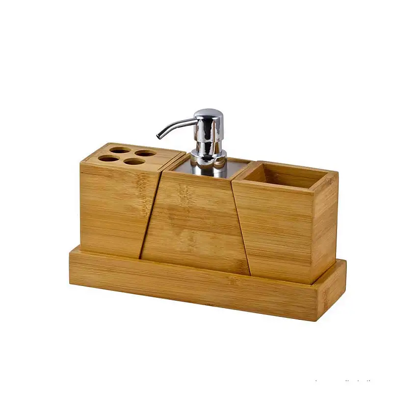 Promoção!Kit de Acessórios de Bancada para Banheiro Coisas e Coisinhas Bamboo