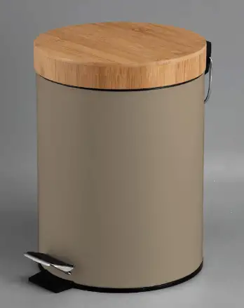 Promoção!Lixeira 5L Tampa Bambu Bege