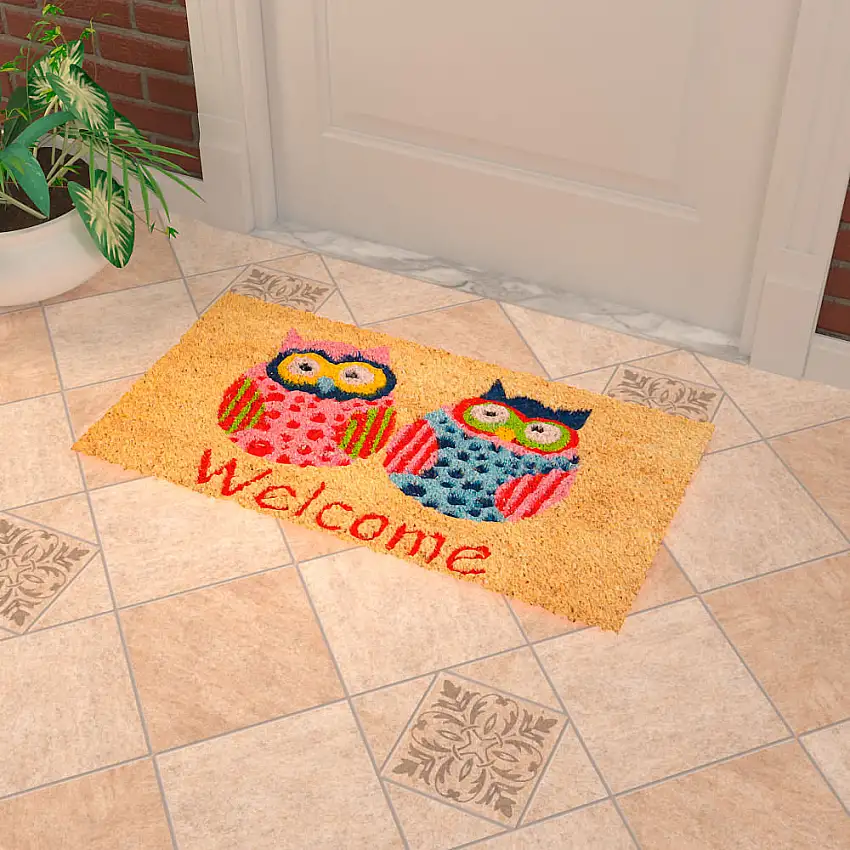 Capacho fibra de coco 60x40cm Corujas colorido Coisas e Coisinhas