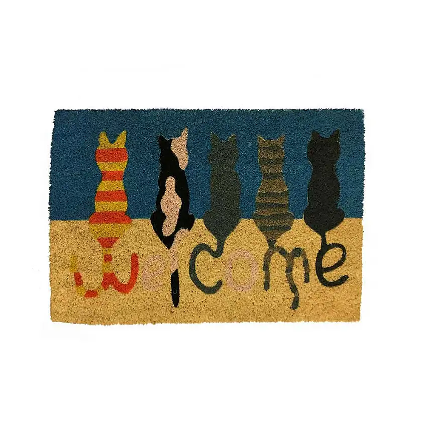 Capacho fibra de coco 60x40cm Gatos colorido Coisas e Coisinhas