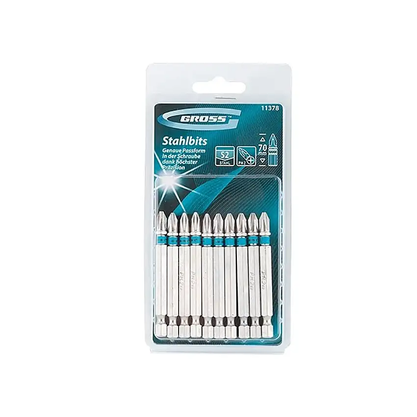 Jogo Bits PH 1/4 Pol. Comprimento 70mm Ponta 1/4 Pol.PH2 Aço S2 10 Peças MTX