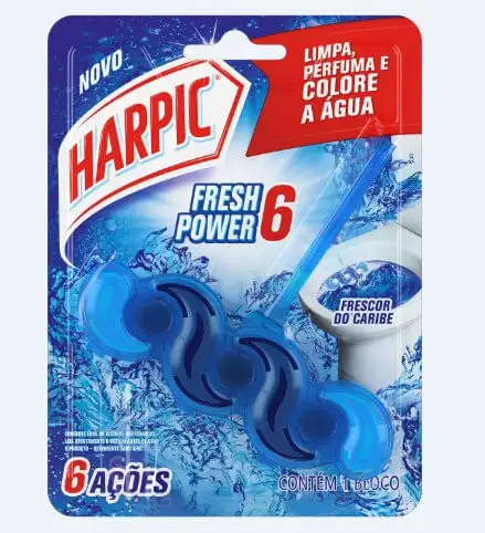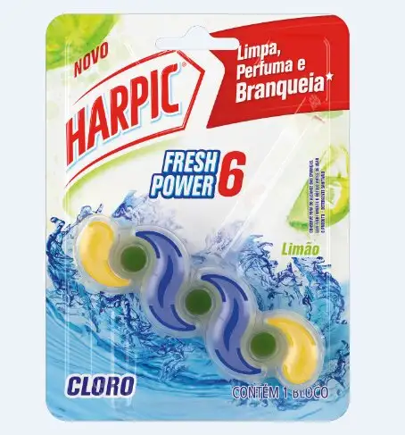• Bloco Sanitário Fresh Power 6 c/ Cloro Desinfeta e Branqueia Harpic