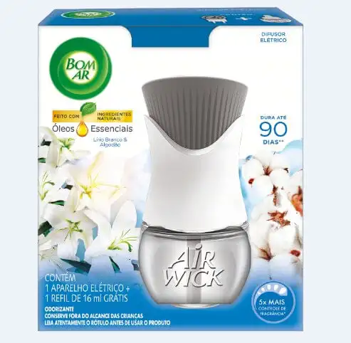 • Difusor Elétrico Lírio Branco e Algodão Refil 16mL Bom Ar