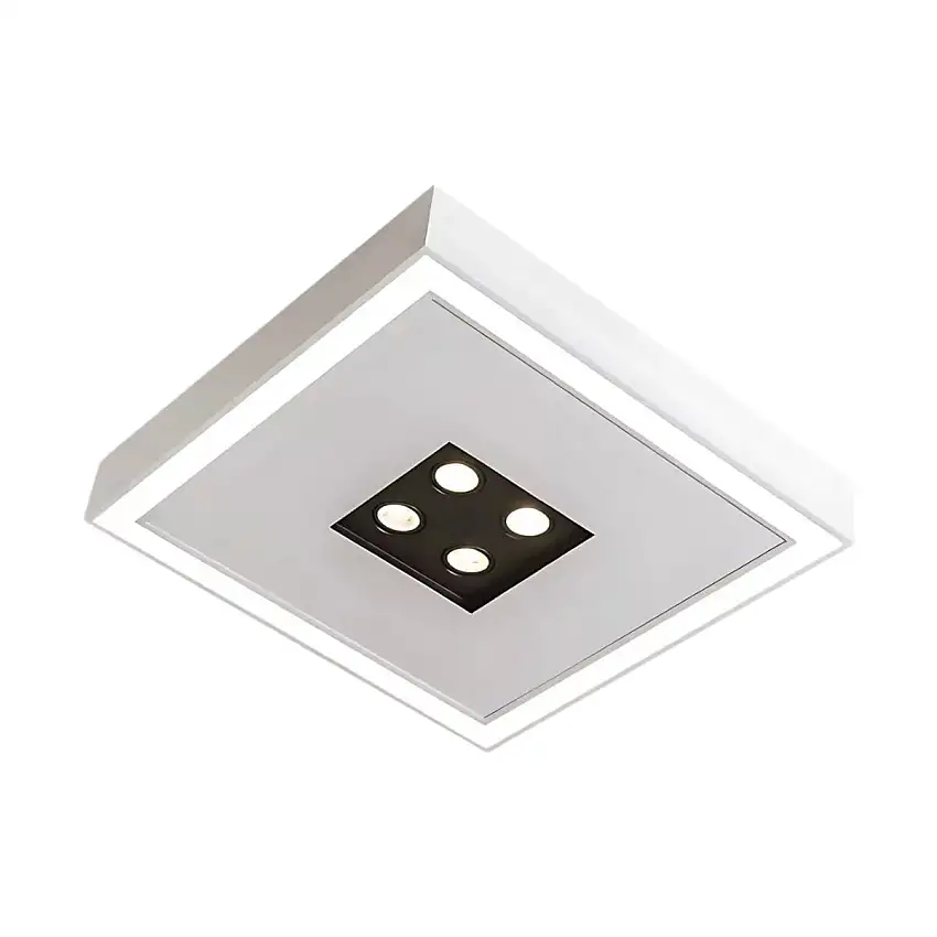 Promoção!Plafon Quadrado 4Xgu10 Dicroica + Led 36,6W 3000K Bivolt Branco 19205/42Led3 Usina Design