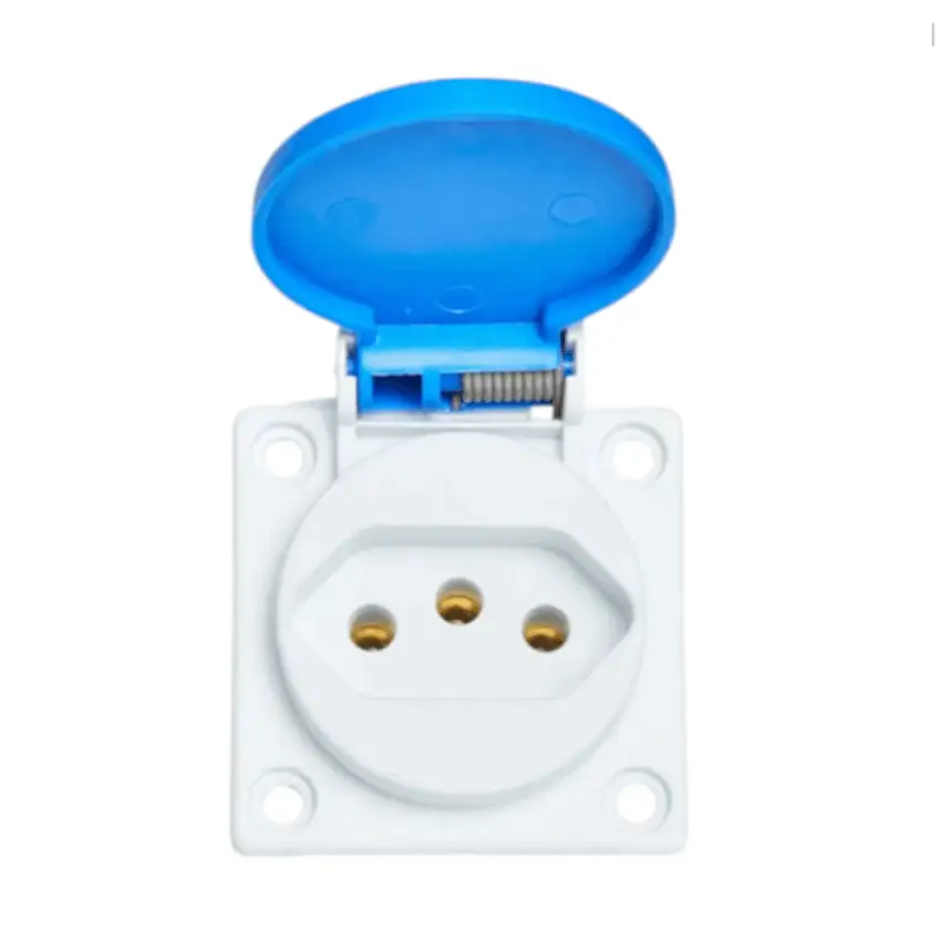 Promoção!Tomada Industrial Não Metálica Embutir Plástico Fêmea Bipolar Terra 20A 250V Azul Com Tampa Quasar S8641 Steck